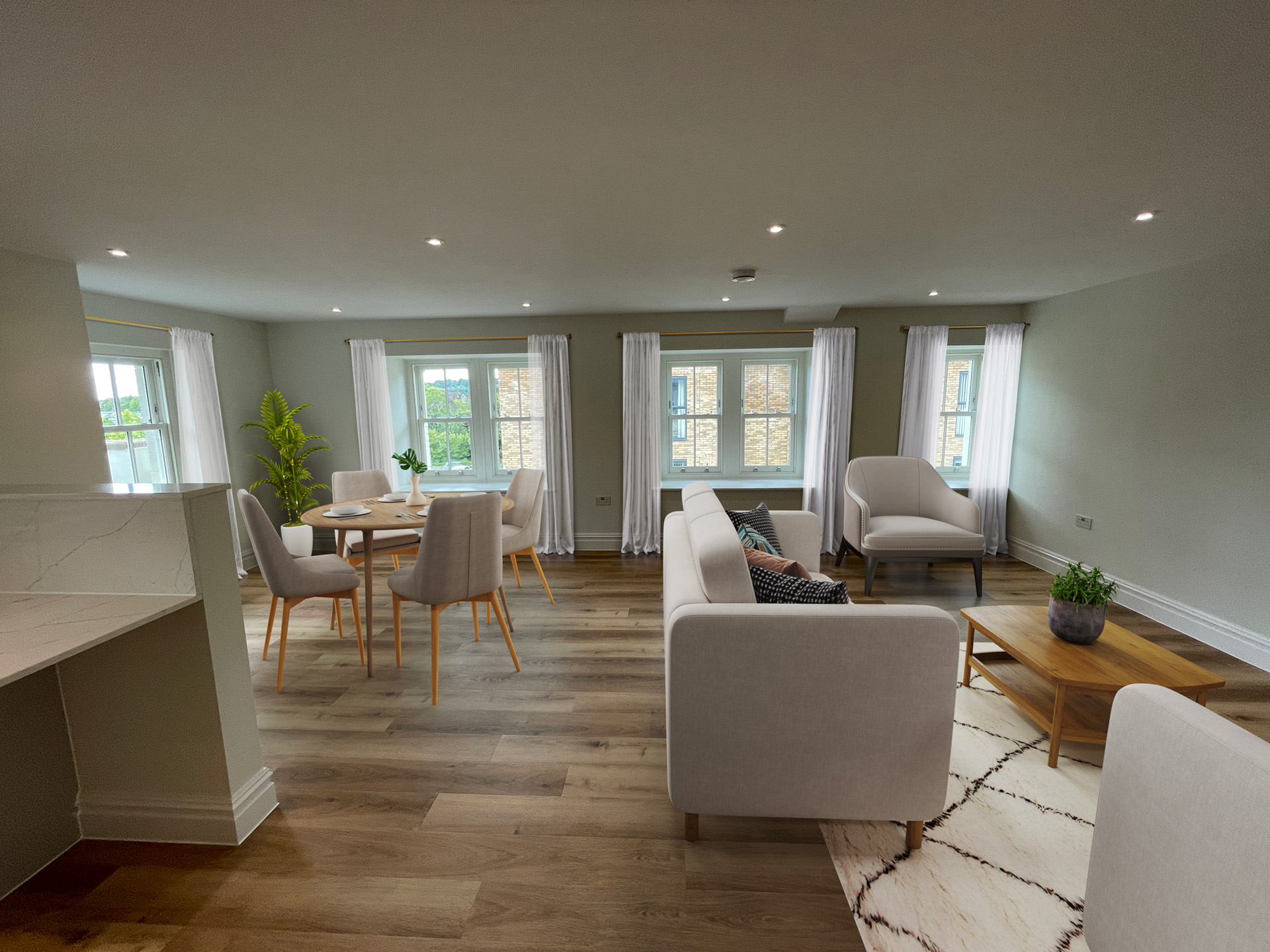 Spacious dual aspect living/dining area providing views of Salisbury cathedral spire. Main bathroom, plus an ensuite bathroom to the master bedroom, and three useful hallway storage cupboards.